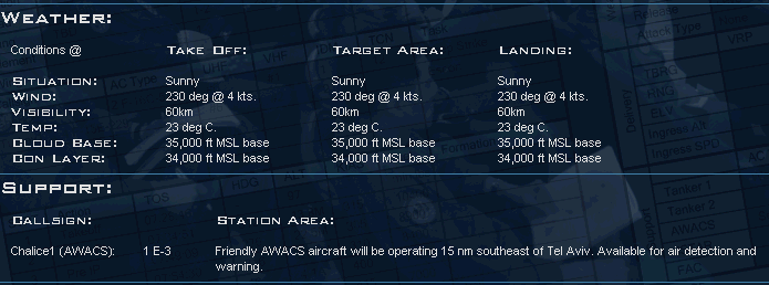 Ces escadrilles peuvent également bifurquer vers le sud vers le waypoint #8 pour atteindre d'autres cibles d'opportunités mais ces dernières exigeront un refueling carburant au sol à la base aérienne d'Eliat et allonge cette mission de près de 45 minutes, sinon, vous pouvez escamoter le waypoint #8.