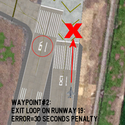 2.06) Une pénalité de 30 secondes sera ajoutée si votre sortie ne s'effectue pas correctement à plat (HORIZONTAL LEVEL) avec un passage au dessus du numéro de piste 19 indiqué en bout de piste.