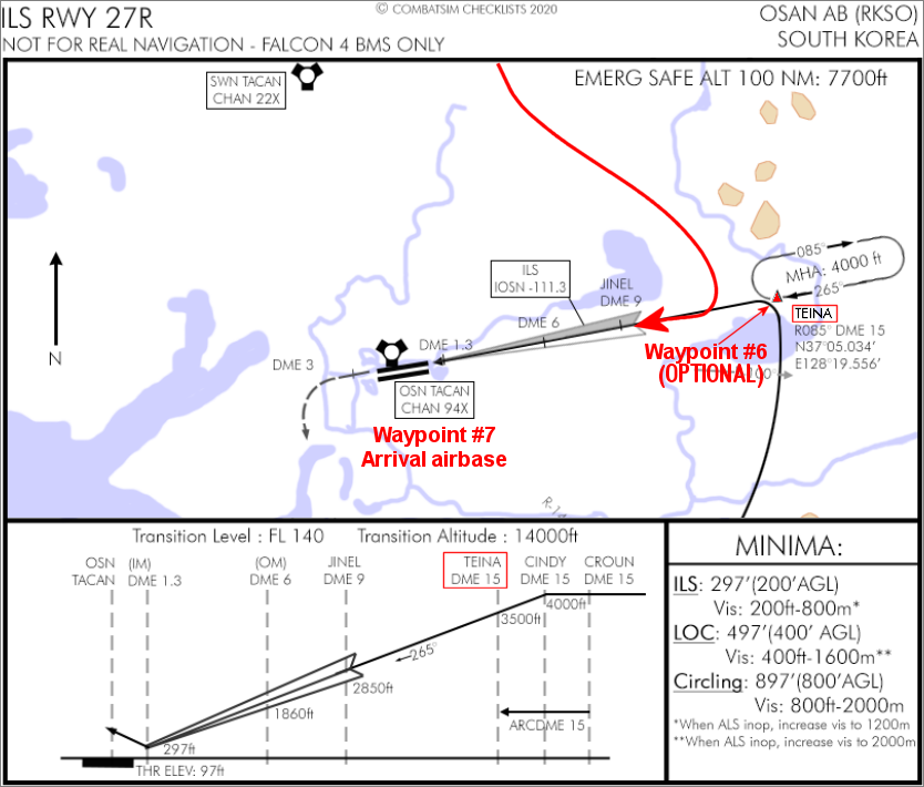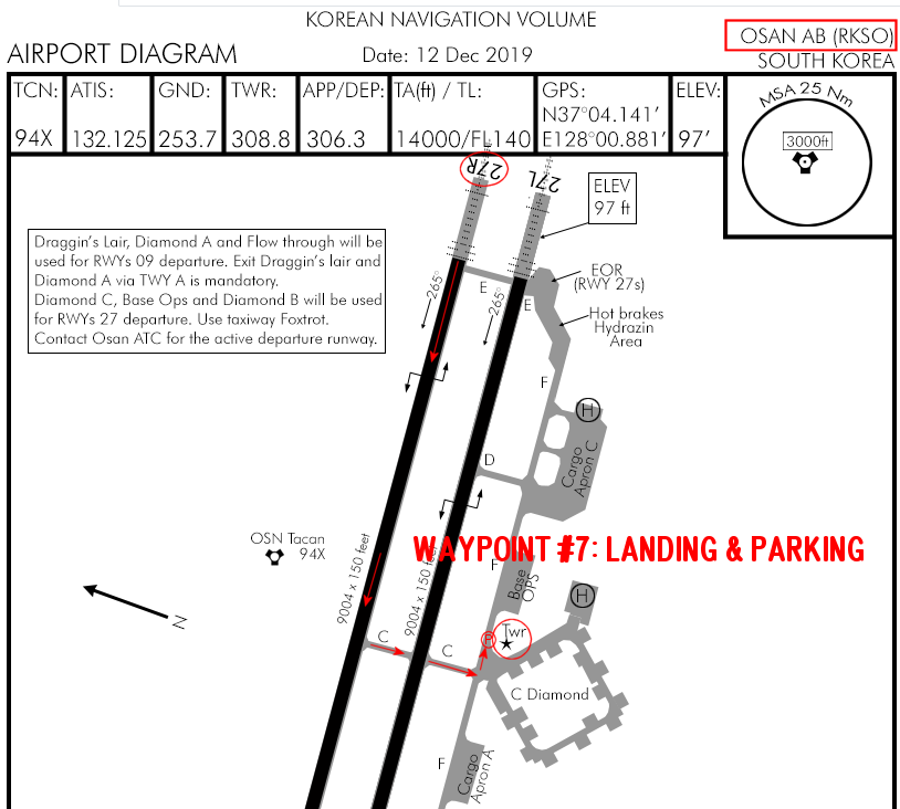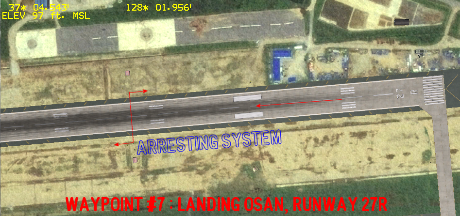 5.08) Dès le décollage de la base alternative de Suwon (wpt #5), dirigez-vous rapidement vers la base d'arrivée finale, soit celle de OSAN (TACAN 094X), piste 27R.