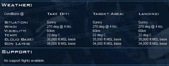 Consultez le briefing de Mako 5 pour voir le «Load-out» de votre appareil F-16. Il est interdit de modifier votre load-out lors de cette mission.