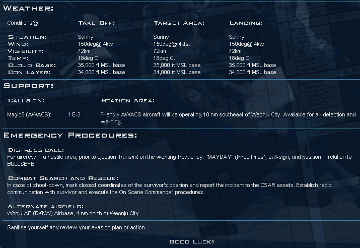 Note2: Cette mission officielle génère des statistiques qui seront compilées aux dossiers des pilotes. Consultez ces statistiques au canal «Tactical» de notre serveur 101-Teamspeak.