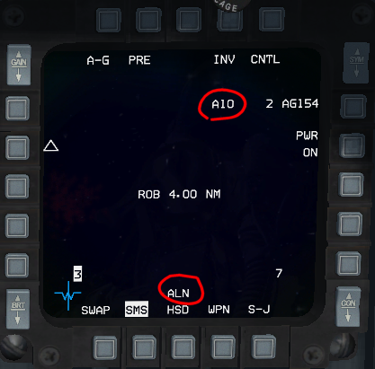 L'AG154 indiquera un décompte de A10 à A04 pour le temps requis à l'initialisation et l'alignement (ALN) devrait apparaître pendant le décompte de A10 à A04 avant de pouvoir utiliser la bombe JSOW.