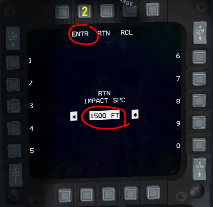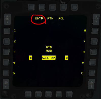 Appuyez ENTR via l'OSB#2 pour enregistrer la modification du Range On Bearing (ROB).
