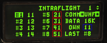 En mode tactique de combat et dès qu'il se trouve en situation «Fence-In», chaque pilote du package doit synthoniser la fréquence UHF identifiée par le «Preset» #6 (Intraflight/Tactical) de son briefing afin d'être repérable par les membres du package qui ont inscrit votre #IDM dans leur configuration DED INTRAFLIGHT.