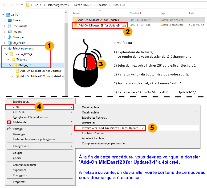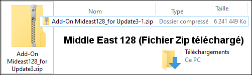5.2 Décompresser le module Add-On Mideast128 for Update3-1 au même endroit vers un sous dossier des téléchargements qui portera le même nom que le fichier zip lui-même.