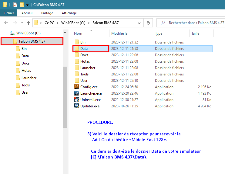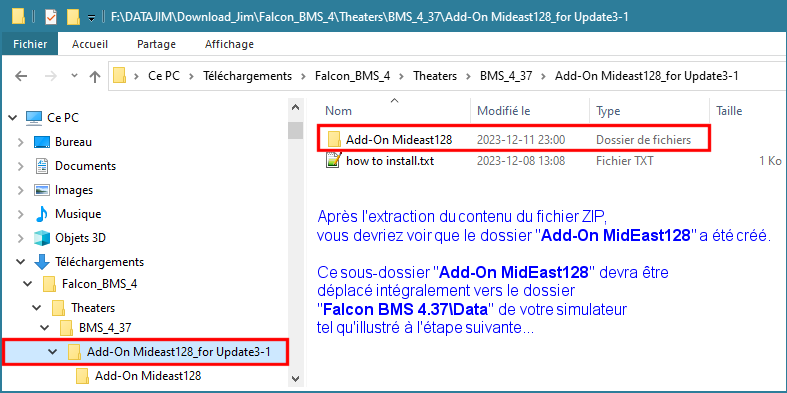 Exemple d'un dossier de téléchargement: [Ce PC]\Téléchargements\Falcon BMS\Theatres\BMS_437\MidEast128\